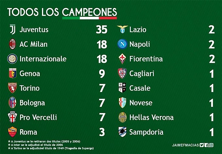 Всего в чемпионате Италии побеждали 17 клубов. Мы всех назвали.