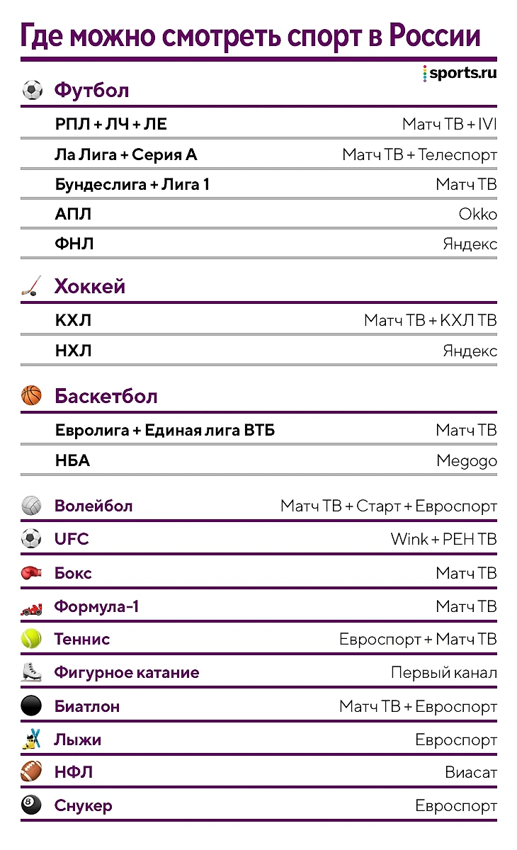 А что еще и где можно посмотреть в России легально? Мы собрали все вместе на одной картинке (ориентируясь уже на новый сезон)