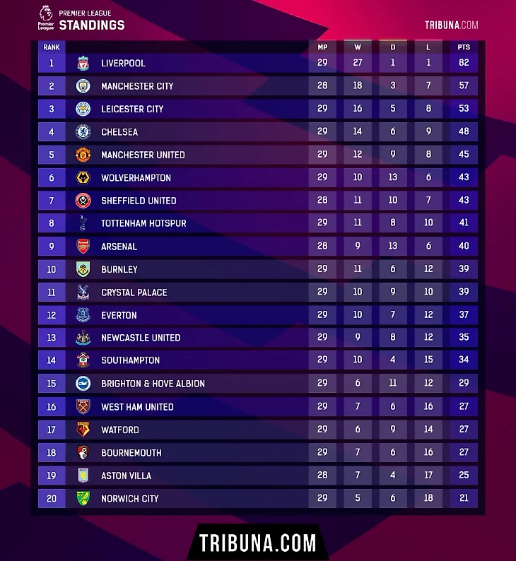 «Манчестер Сити», "Астон Вилла", "Шеффиллд" и « Арсенал» сыграли всего 28 матчей, и эти оставшиеся игры состоятся 17 июня.