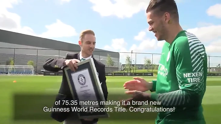 Клуб пригласил представителей книги рекордов Гиннеса, чтобы зафиксировать его феноменальные способности. Он установил мировой рекорд на длину удара с места, который составил 75.3 метра.