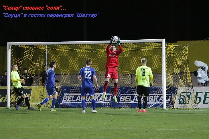 В сахарно-солевом дерби (одни – из Солигорска, у других главный спонсор – сахарный завод) с «Шахтером» игроки «Слуцка» не выглядели принципиально сильнее соперника, но свои моменты в первом тайме реализовали. А усилия футболистов из Солигорска раз за разом нивелировал Панкратов. Решающий отрезок имел место в начале второго тайма. Арбитр предъявил вторую желтую карточку защитнику «Слуцка» Образову и назначил в ворота гостей пенальти. Панкратов отбил! Такие моменты обычно вдохновляют полевых игроков. И в меньшинстве футболисты «Слуцка» не дрогнули, позволив хозяевам лишь в самом конце игры сократить разрыв в счете благодаря рикошету от защитника.