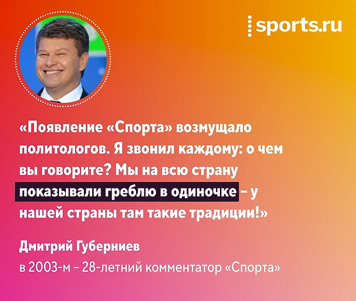 Сразу чувствовалось, что мы пришли делать канал сыгранной командой. Как историк проведу параллель. В чем сила египетских пирамид? В том, что снизу доверху все понятно – геометрически четкое строение. Каждый знал свое место, никто из комментаторов не лез учить весь мир, каким политиком был Сталин и как должен жить наш биатлон. На «Спорте» Губерниев никогда бы себе такого не позволил, потому что его бы быстренько поставили на место. На «Спорте» люди знали предмет, никто туда не приходил из Comedy Club