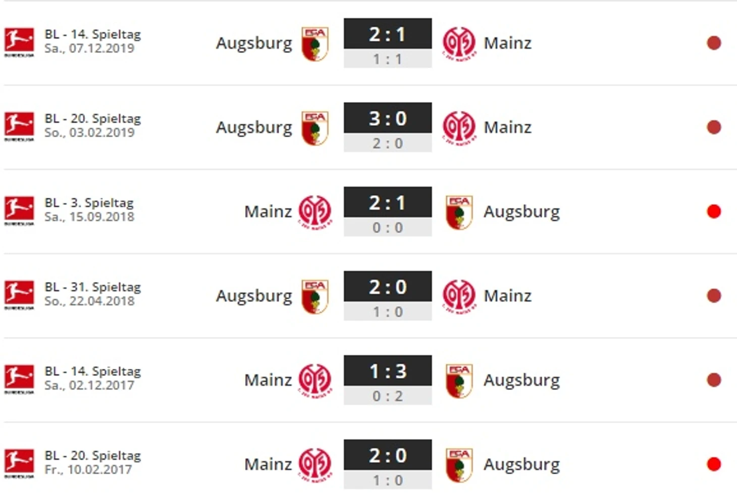 Многоликий баланс: «Аугсбург» выиграл, включая Кубок Германии, пять из последних шести поединков против «Майнца 05». Впрочем дома «Майнц 05» шесть из последних семи встреч против «Аугсбурга» записал на свой счет.