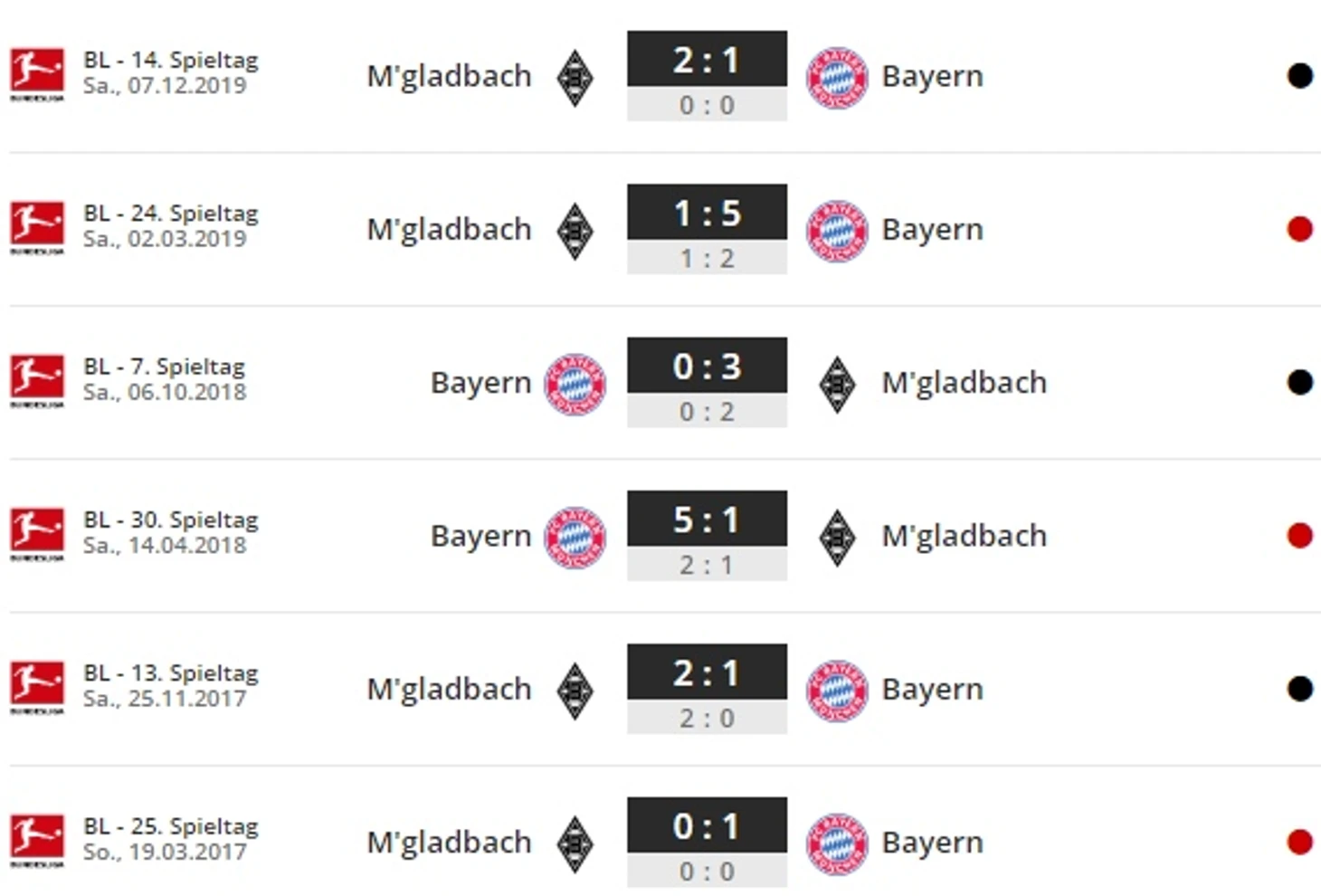 Раздражитель «Баварии»: «Боруссия М» добилась в последних восьми гостевых матчах Бундеслиги с «Баварией» «баланса» в итоговых результатах (три победы,две ничьи, три поражения). С лета 2014 года ни один другой клуб не набрал столько очков против «Баварии», как «Боруссия М» (17).