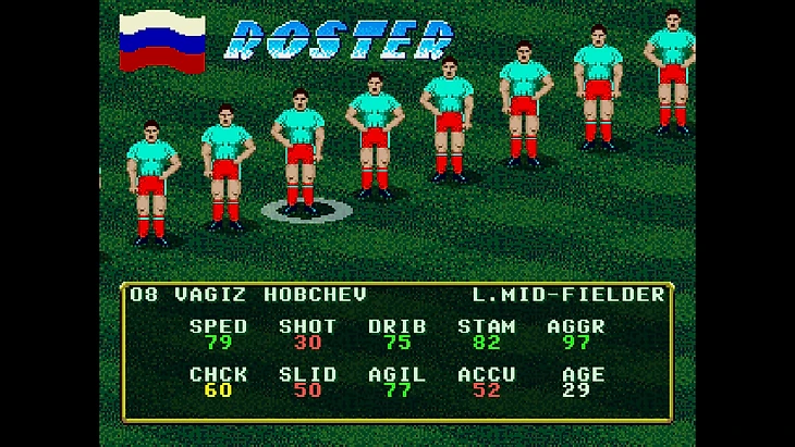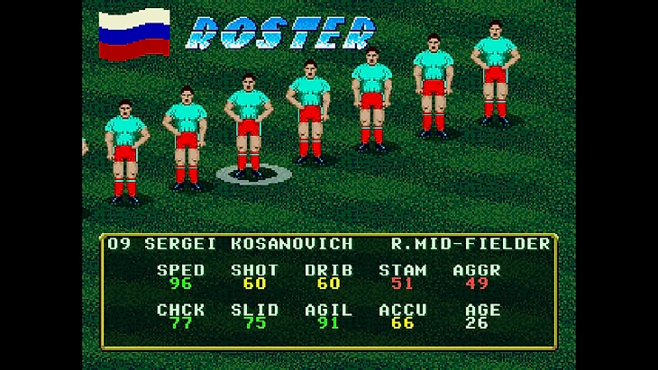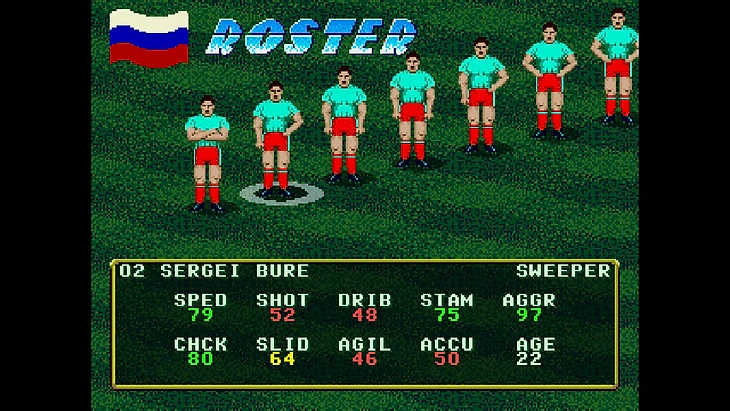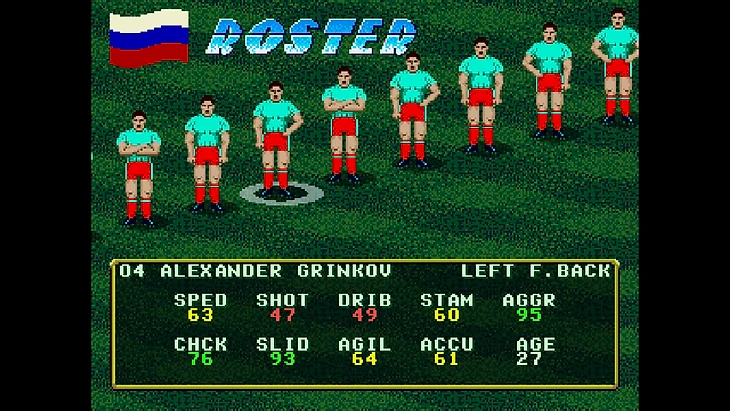 Если же подходить к вопросу серьезно, то степень адекватности российских фамилий в этой игре находится где-то в районе пятидесяти процентов. Да, здесь присутствует откровенный кринж, но есть при этом и вполне правдоподобные имена. Жаль, не написано, какие клубы представляют эти замечательные футболисты. Может быть, подобная информация содержится в первой игре "Пеле"? Об этом в следующем обзоре.