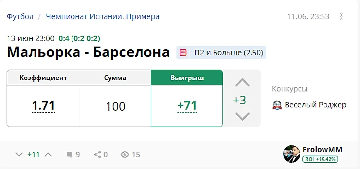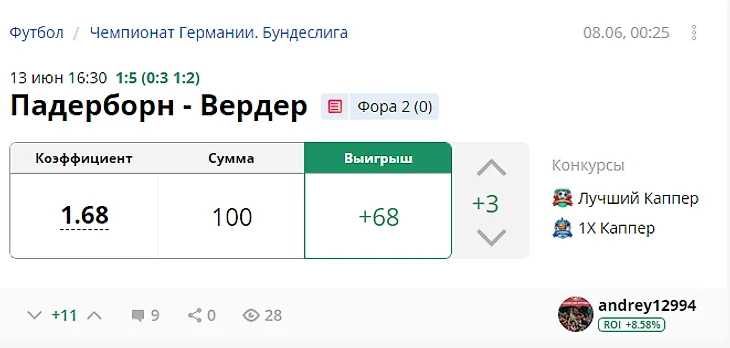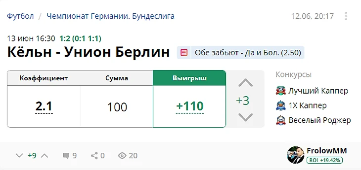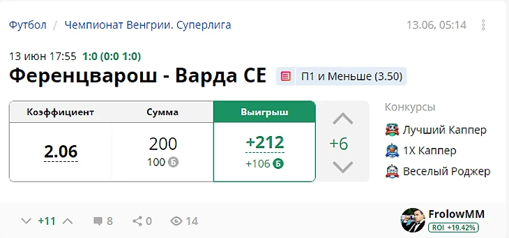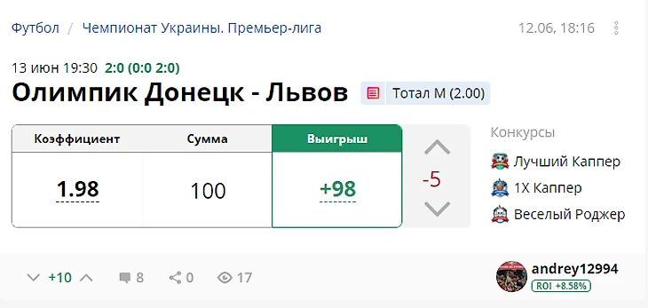 Прогнозы от капперов с РОИ от +10%, день 17 (итоги)