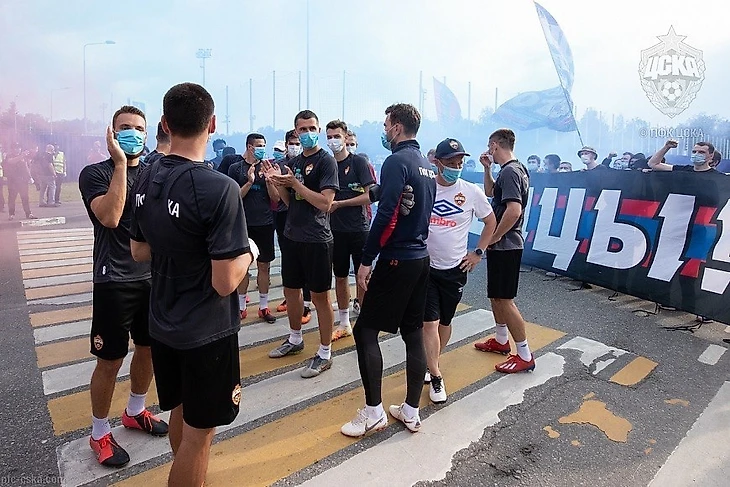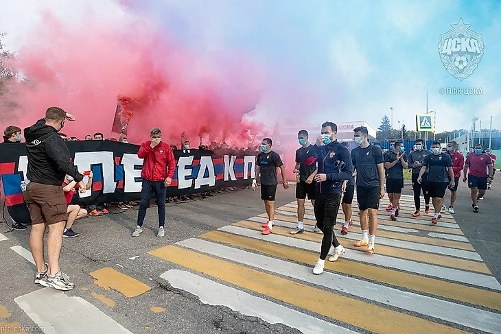Если что, вот так вчера фанаты ЦСКА мотивировали команду перед матчем с «Зенитом» рядом с базой в Ватутинках: перекрытая улица ✔️, пиротехника ✔️, кричалки ✔️, аресты ❌.