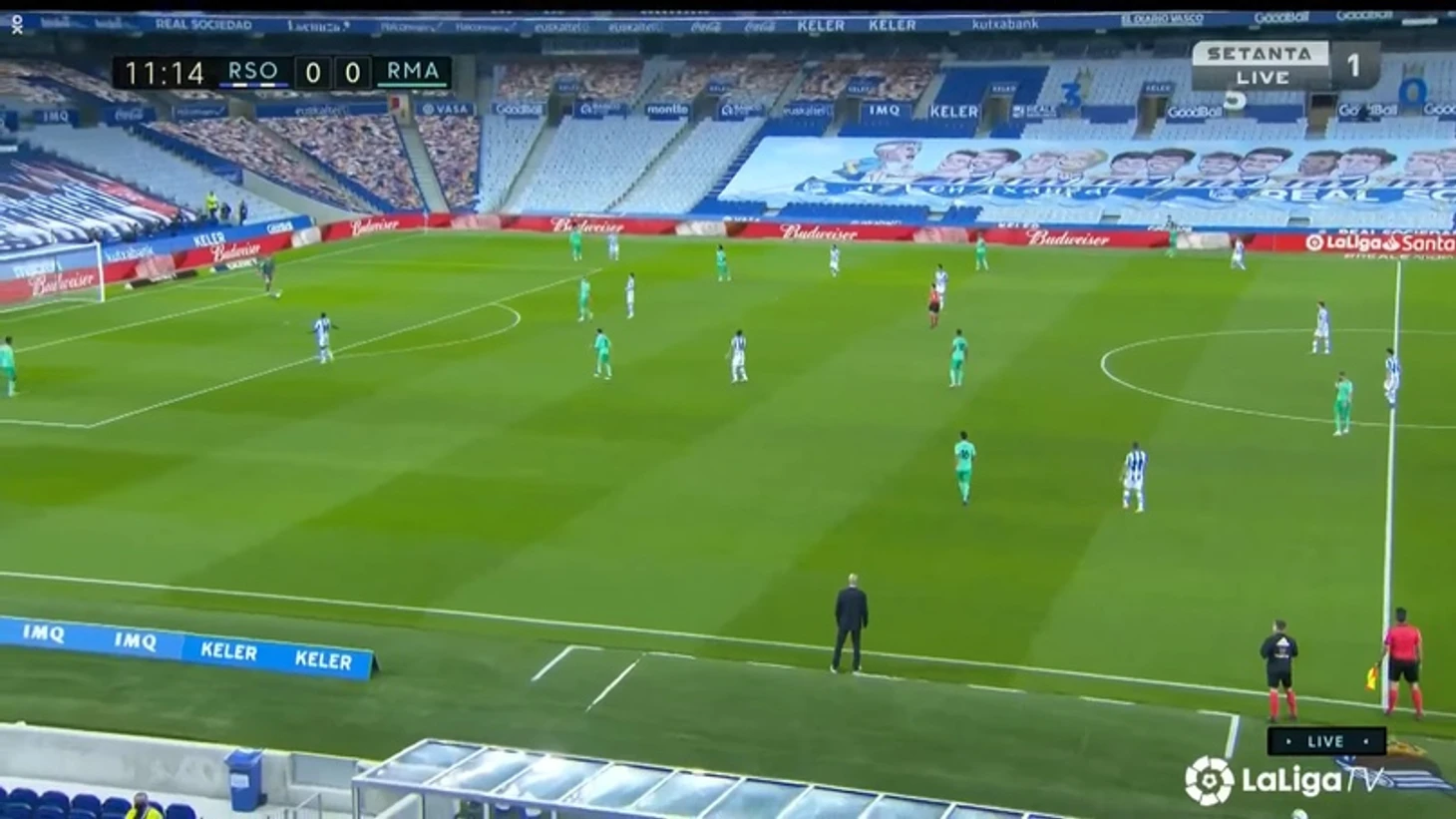 Хозяева быстро перехватили инициативу и вышеупомянутый Янузай сразу же создал момент и сделал прострел в 14 зону на Мерино, который не смог воспользоваться преимуществом в опорной зоне соперника. Через несколько минут при стандартном положении вновь опорная зона провалилась и только Микель Мерино, находившийся в офсайде, спас «Мадрид» от пропущенного гола.