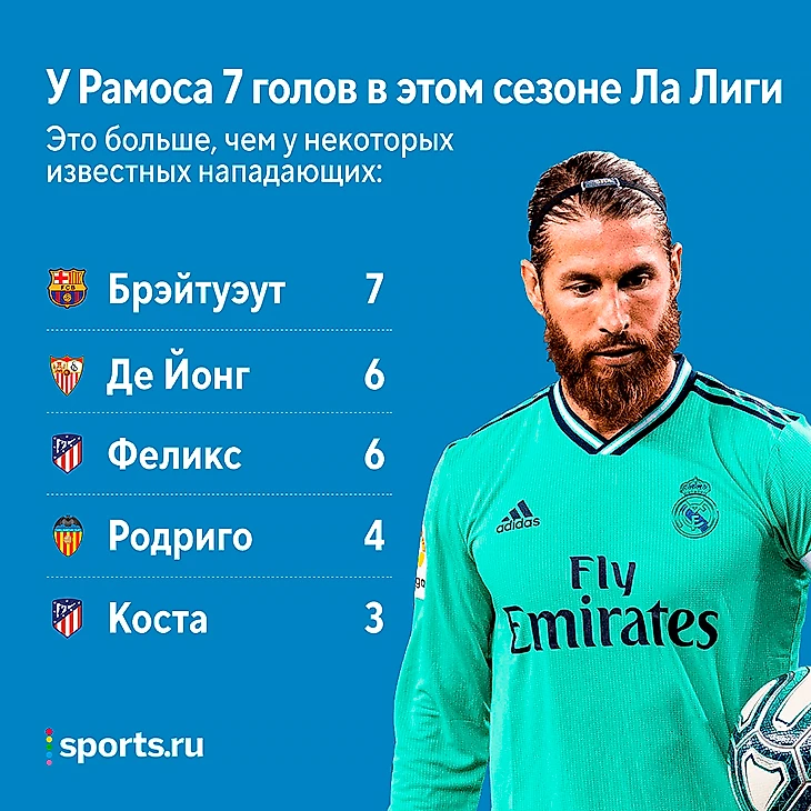 Рамос – великий бомбардир. Забивает больше Коутиньо и Погба, обошел по голам Кумана – и вообще всех защитников Ла Лиги