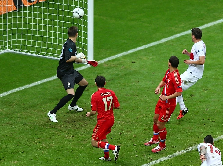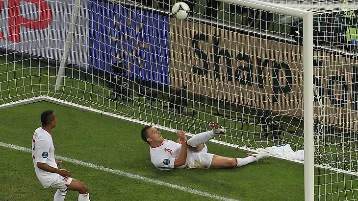 А это главный скандал турнира. «Украинец» Марко Девич пробил английского вратаря, Джон Терри вытащил мяч явно за линией ворот, но судьи не зафиксировали очевидное взятие ворот. Ладно, Англии это компенсация за ЧМ-2010, но Украину-то за что? Возможно, именно этого гола хозяевам и не хватило для преодоления группового этапа.