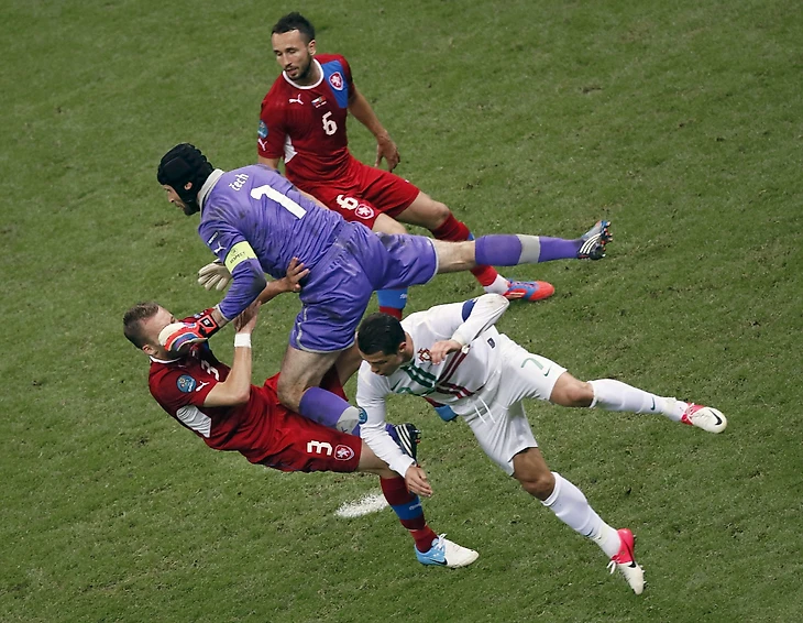 Петр Чех расшвыривает и своих, и чужих, но Криштиану Роналду в концовке первого четвертьфинала все-таки прорвался в штрафную и забил победный.
