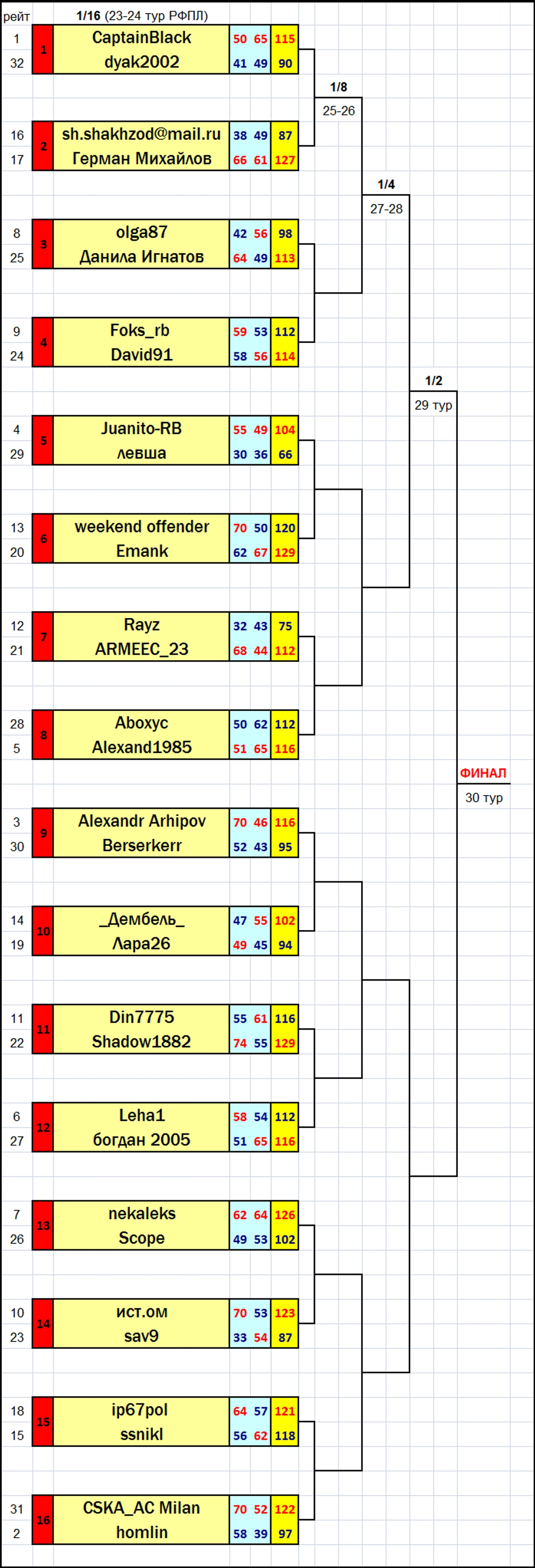 Привет Всем! Подводим итоги очередных туров в Чемпионате и Кубке фэнтези-Лиге РА
