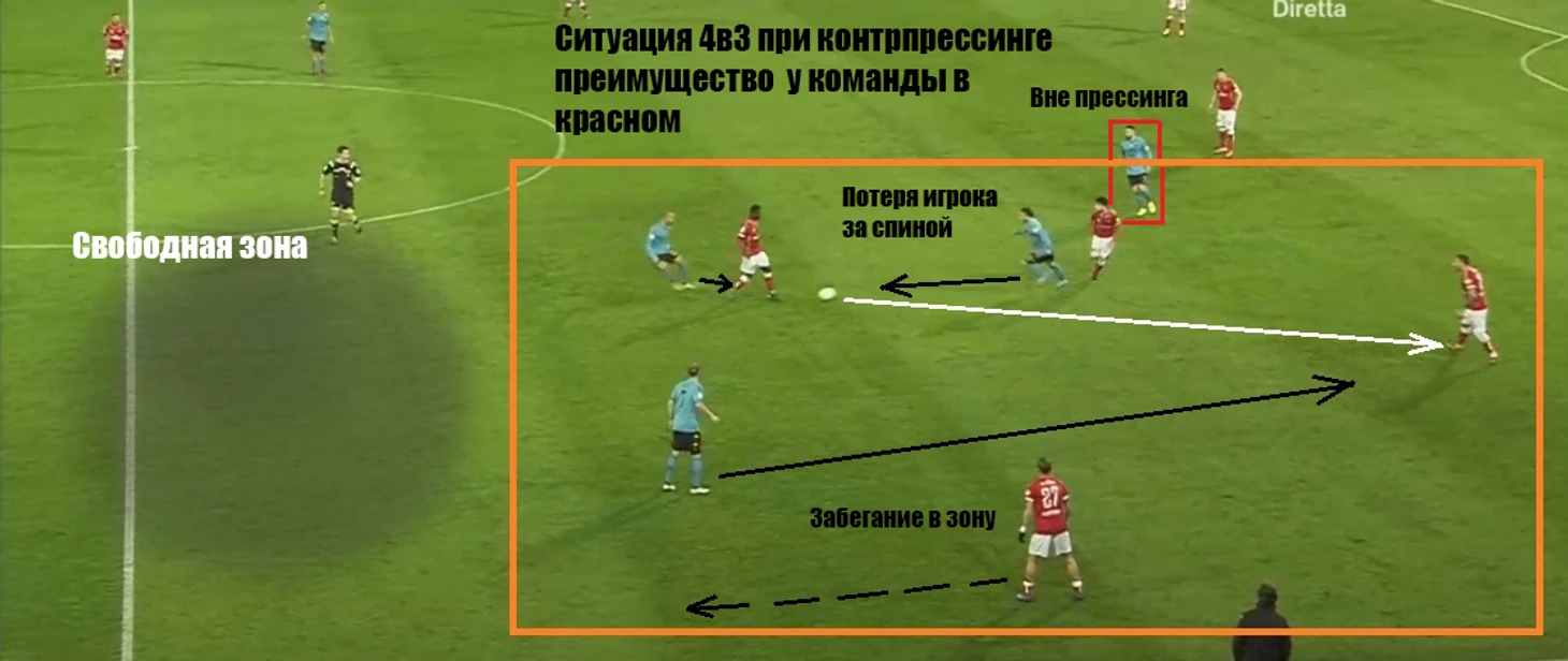 Из интересного стоит отметить, что играя в схеме 4-3-3 прессинг начинает один из ЦПЗ — Хэтемей: