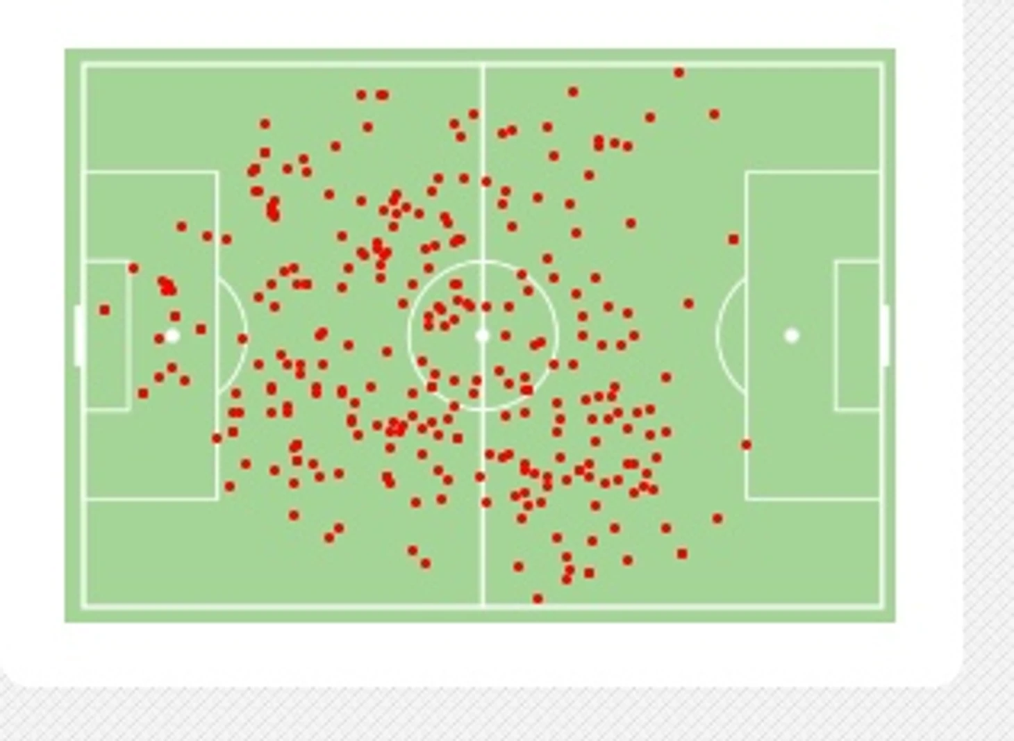 Шьяттарелла — краеугольный камень системы Индзаги .Выше мы уже писали, что именно он действует в опорной зоне и страхует подключения обоих крайних защитников. совершает в среднем 2.2 отбора за матч. В прошлом году было 3.7, но здесь нужно учитывать уровень сопротивления прошлого сезона( СПАЛ, серия А) и нынешний, где он играет в команде — лидере серии Б. Так или иначе, именно на нем строится чаще всего выход « Беневенто» в атаку. Естественно, можно назвать и Виолу, но система Индзаги строится именно на Шьяттарелле. Ниже карта его действий, из нее видно насколько он системообразующий игрок: