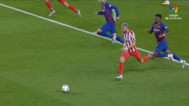 Во втором тайме «Барса» сама вышла вперед благодаря пенальти. Но потом Карраско упал в штрафной и судья снова поставил пенальти. Контакт был минимальный, а игрок «Атлетико» упал из-за того, что потом запнулся о собственную ногу.