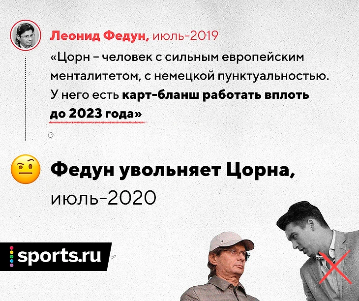 Причем это не просто классическая история о карт-бланше Федуна, которого не существует в природе. В июле 2019-го президент «Спартака» выдавал Цорну и такие признания.