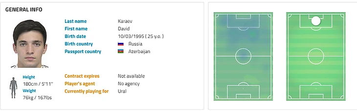 Уже не молодой 25-летний парень принадлежит Уралу и играет за КАМАЗ в ПФЛ. И делает это качественно и старательно. Забивает 0.56 гола за 0.51 xG. Забил 12 голов и отдал 7 ассистов. В эту рубрику он попал, потому что старается играть красиво: 9 попыток дриблинга с проходимостью 56,7% говорят сами за себя. 4 удара за игру с точностью 45% и 5,5 касаний за игру в штрафной позволяют верить, что всё у Давида во взрослом футболе может сбыться.