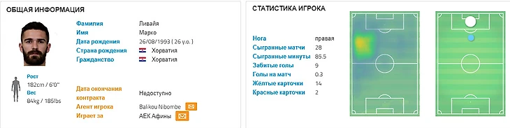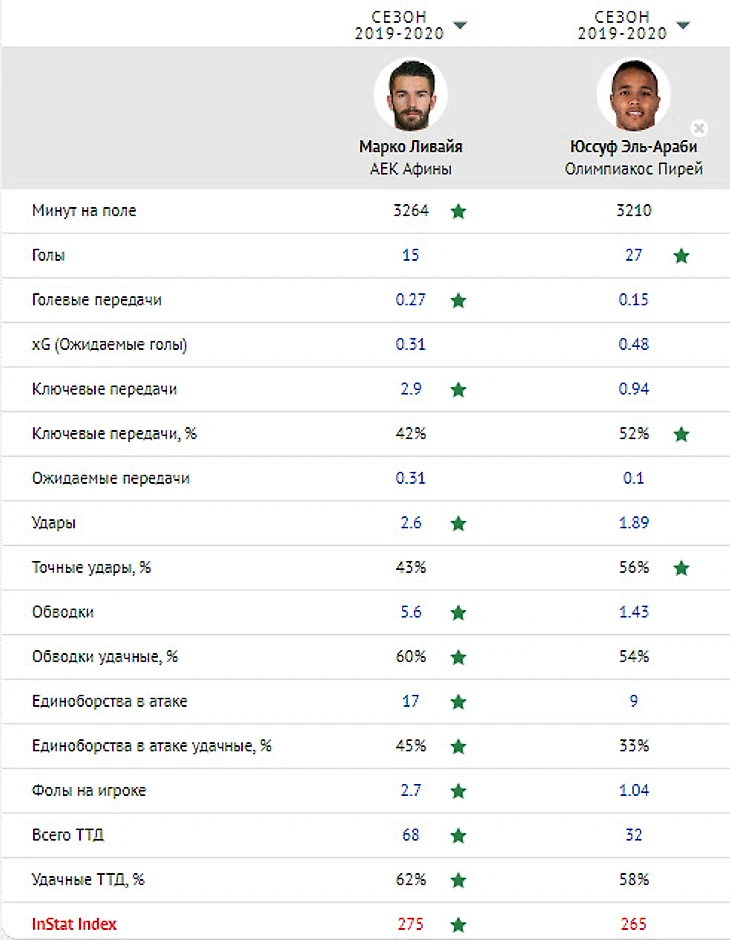 Вот его сравнение с лучшим бомбардиром чемпионата Греции: