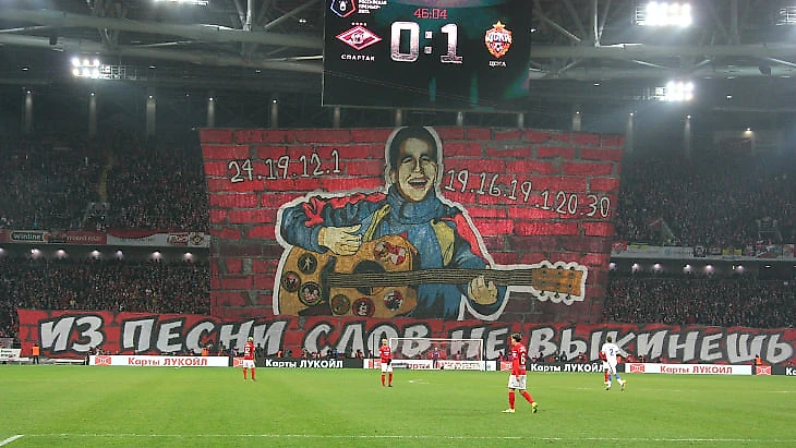 Как и "Спартачи", "красно-синие" тоже сделали совместный перформанс с рэпером где вся трибуна пела припев песни "Сансара". К слову Баста ещё и владеет дружеским клубом для ЦСКА - СКА Ростов.