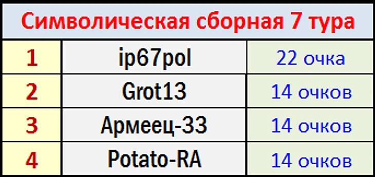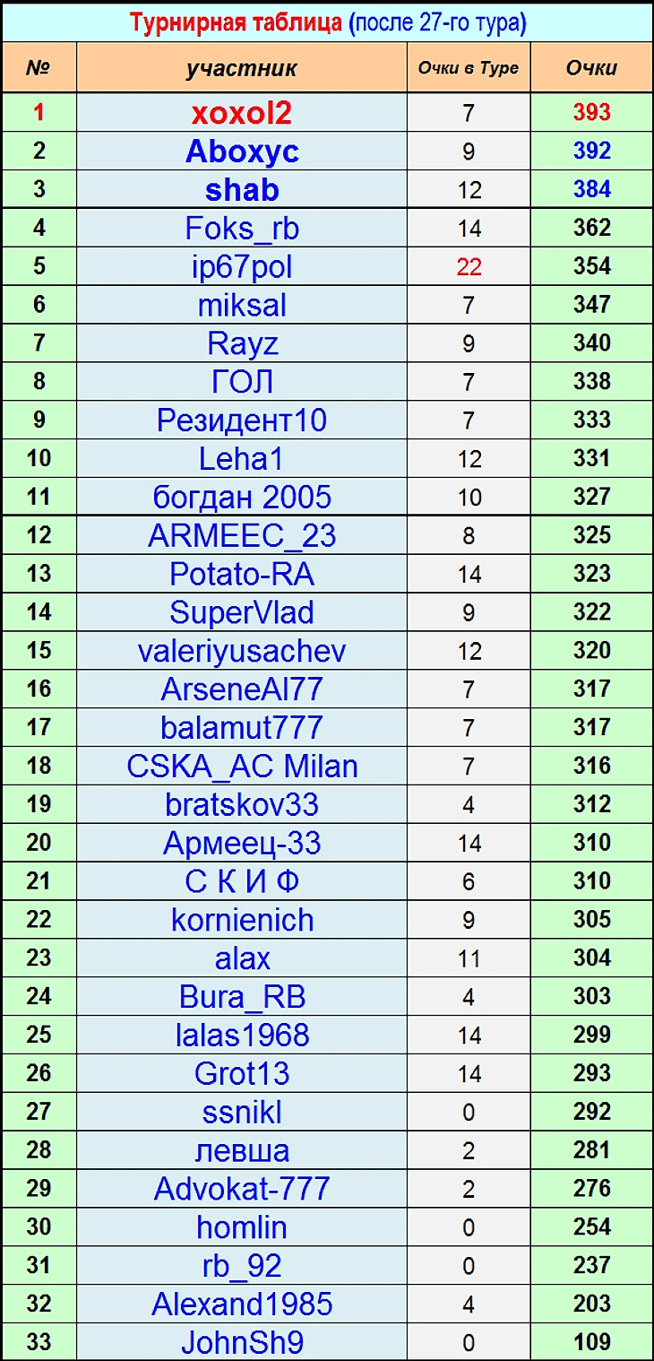 МВП 27-го тура - Александр ip67pol - 22 очка!