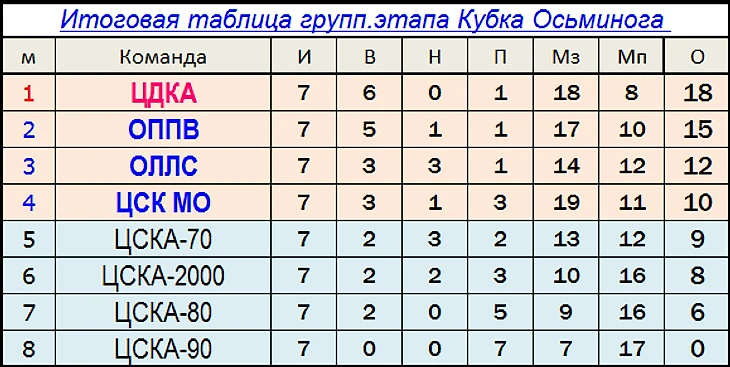 При равенстве счета после двух полуфинальных матчей плей-офф КОсьминога (например 3-1 и 1-3), или после ничьих в финалах за места, итоговым победителем становится команда, у которой наибольшее количество очков в сумме за эти матчи (2 полуфинала или финальная игра) у всех 4 игроков команды.