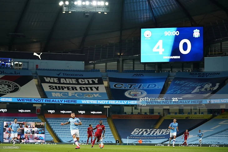 Однако, несмотря на все ожидания, чемпионской гонки в этом сезоне АПЛ не оказалось в принципе. После поражения Сити против Челси на Стэмфорд Бридж, Ливерпуль прибыл на Этихад в качестве действующих чемпионов. Ранее, в своём первом матче после возобновления сезона Ливерпуль стартовал слабо, сыграв в ничью с Эвертоном, однако сразу восстановил боевой дух, разгромив Кристал Пэлас со счётом 4-0