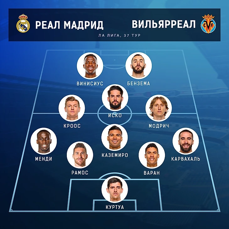 📊 C Азаром и Асенсио или Винисиусом и Бензема? Выбираем состав на матч с «Вильярреалом» 👍👎