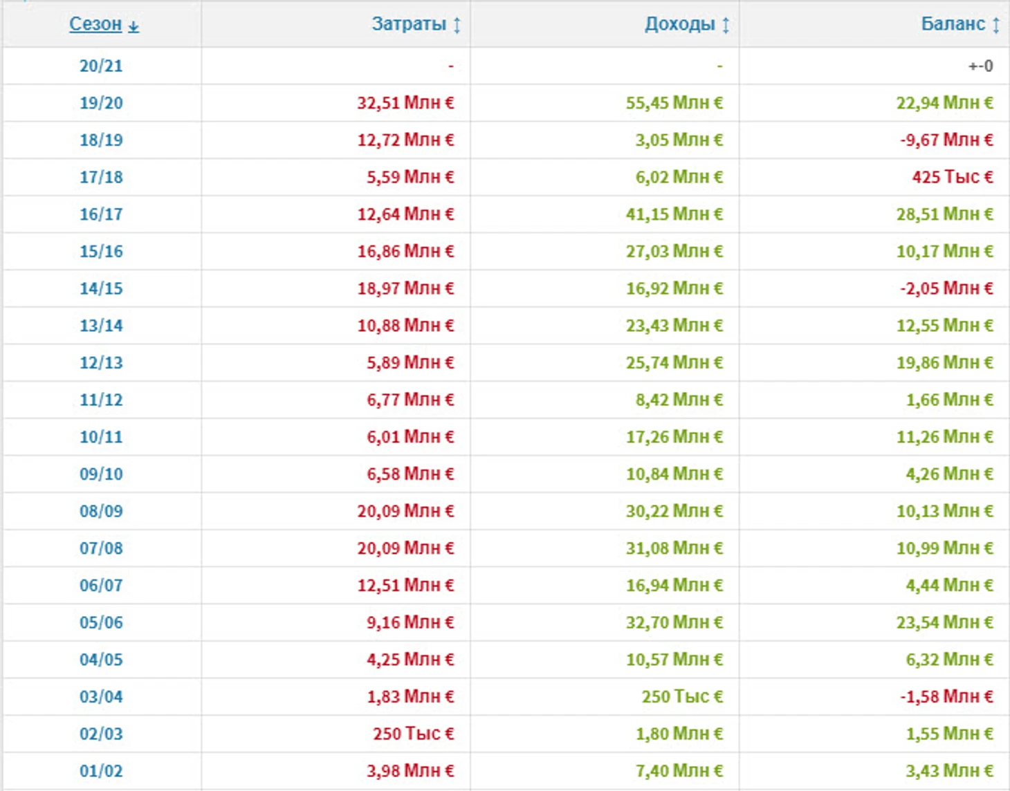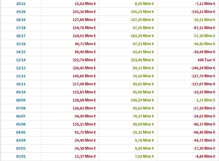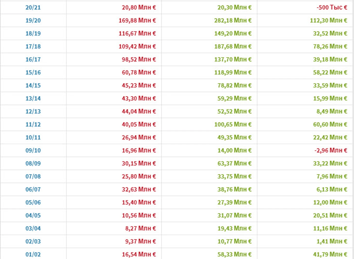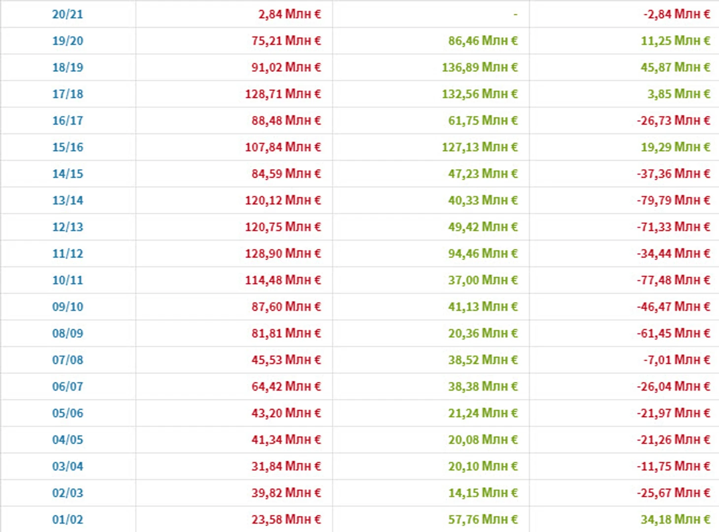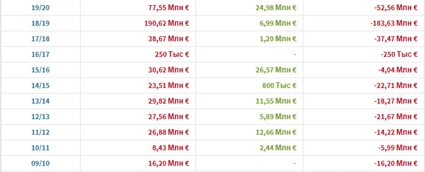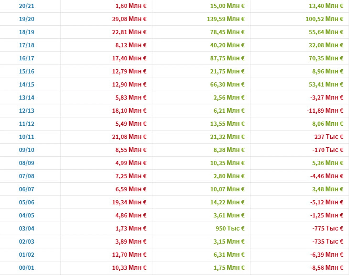 Давайте взглянем на статистику и посмотрим трансферные балансы чемпионатов, которые находятся в футбольном рынке.