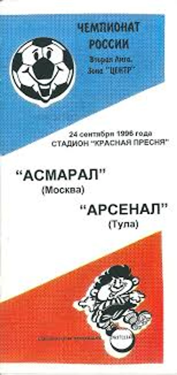 Впрочем, уже очень скоро Асмарал стал опять лететь всем. Домашние 1:3 с Металлургом, 0:1 с Ностой, нули с откровенно никаким пензенским Зенитом и поражение даже от безвестного Заводчанина из Саратова (фактически фарма Сокола, 0:2). В 11 туре последовал домашний технарь с Ладой (возможно, что по тем же самым организационным причинам, по всей видимости, опять докопались до арены на Пресне). Это было уже в новинку, ясно, что моральному подъему это способствовать не могло, а потому Асмарал летит опять же дома Рубину 0:3, далее совершенно безвольные 0:4 в Туле и чуть менее печальные 1:3 в Новомосковске. К 15 туру пресненский коллектив уже оседает на дне турнирной таблицы, поэтому победа над щелковским Спартаком была нужна как воздух, и она последовала, 1:0! Победа была еще важна и тем, что Спартак из Подмосковья, как и Светотехника, был клубом, завалившим Асмарал в кубке, причем имея разницу в два дивизиона по классу! Вслед за красно-белыми щелковцами переигран долгопрудненский Космос 3:1, и казалось, что интрига снова назревает, а Асмарал не так уж и печален! Эту короткую победную серию перечеркнул новый технарь с павловским Торпедо (Асмарал не приехал) и поражение от Энергии из Чайковского 0:1. Однако в 19 туре еще несломленные москвичи одолевают курганскую Сибирь 2:0. Поражения от УралАЗа 2:3 и Амкара, причем второе (0:4) очень болезненно и окончательно откидывает москвичей на дно таблицы. Первый круг, впрочем, завершен на позитивной ноте, обыгран ижевский Зенит 1:0.