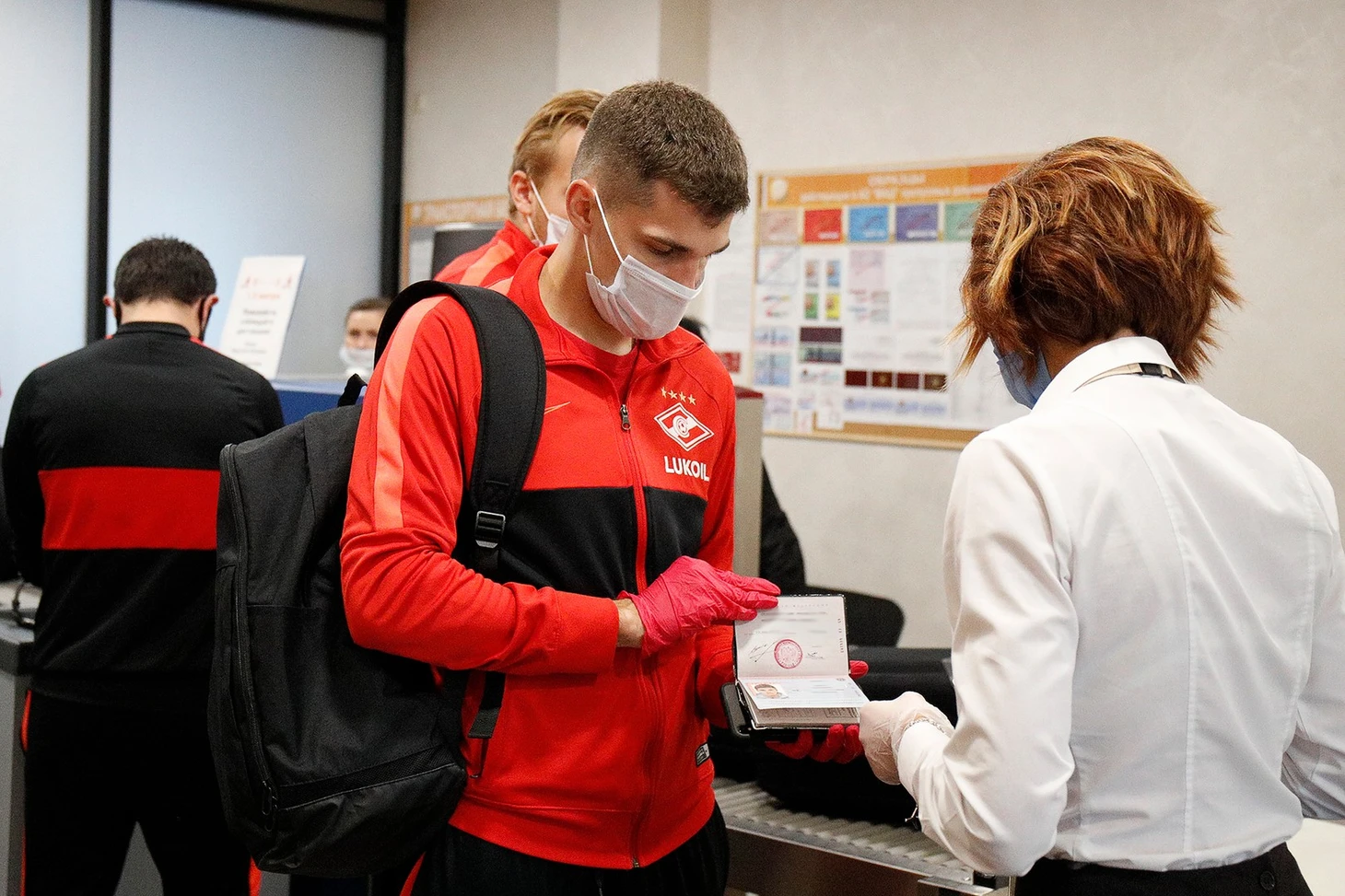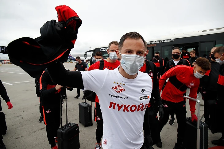 Вместе с партнерами на матч полетели полузащитник Роман Зобнин и форвард Эсекель Понсе, которые не смогут принять участие в игре из-за дисквалификации.