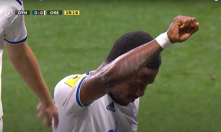 19:31. Второй тур подряд забивает Джоэл Файмейе из «Оренбурга» – и снова вместо празднования становится на колено.