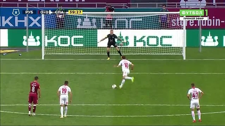 На последней минуте основного времени в штрафную ворвался игрок Рубина и рухнул в контакте с Максименко. Подношение Спартаку от ВАР - не назначили пенальти. Этакая подачка, чтобы сгладить вечатление от постковидного отрезка чемпионата. Рубин пытался давить, Спартак держался и огрызался. И на последней добавленнйо минуте Умяров заработал штрафной. А пробил его Жиго, но совсем неубедительно.