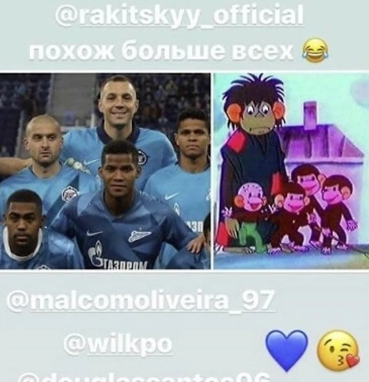 Инстаграм - это вообще та вещь, которую желательно отбирать у людей с таким прекрасным чувством юмора. В случае с Дзюбой, и с советскими мультиками надо аккуратнее. Скажем, коллаж с персонажами мультика про обезьянок где-то в более блэклайфметтерсных краях стоил бы Артему дорого.