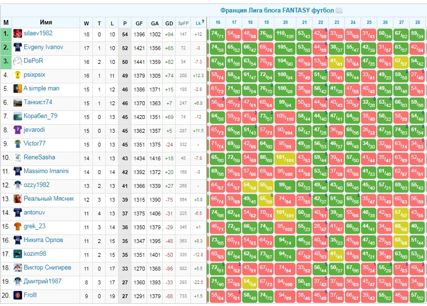 1. silaev1982 - 54 (чемпион)