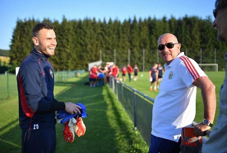 Игорь Акинфеев и главный тренер сборной России Станислав Черчесов.