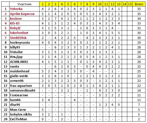Артём Борисов (2-5-8-12-14-18-34) - 1