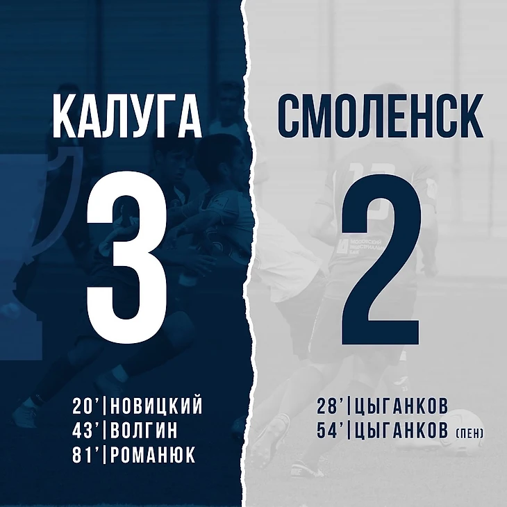 Ещё одна драма в матче Калуги и Смоленска. Хозяева выигрывают 3:2 и в Кубке России больше не остаётся команд из Смоленской области (а было две). Графика-протокол от ФК «Калуга»: