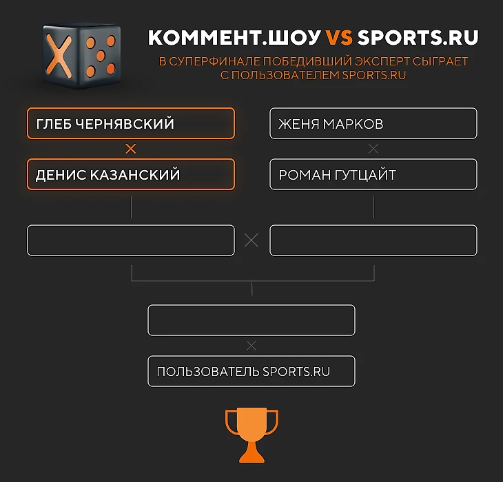 Четвертьфиналы закончились, а полуфинальные пары выглядят так: Глеб Чернявский против Дениса Казанского и Евгений Марков против Романа Гутцайта. Первыми начинают Казанский и Чернявский – погнали!