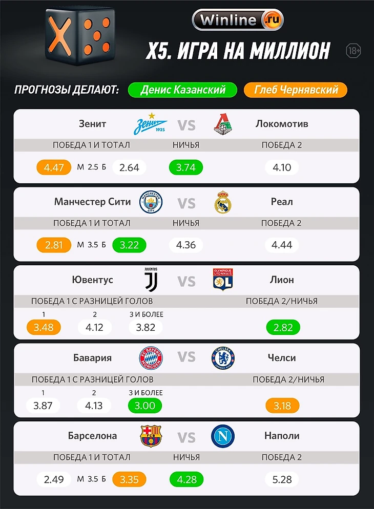 Вы в блоге «X5 – игра на миллион», который мы ведем вместе с букмекерской компанией Winline. Еженедельно мы делаем прогнозы на матчи европейских чемпионатов. Вы тоже можете их сделать (бесплатно!) в приложении Winline – и если отгадаете все пять, получите миллион рублей.