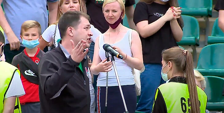 Ведущий хотел попросить Кикнадзе ответить, но тот сразу его перебил. «Не, не, не. Тормозни, никаких вопросов не было. Было заявление. Аудиторией услышано, аплодисментами встречено. Я тоже его услышал, не согласен с тем, что вы сказали. На этом все – точка. Ничего комментировать не буду», – заявил Кикнадзе под недовольный гул болельщиков.