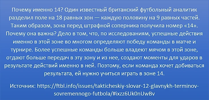 Важным компонентом в реализации планов по вскрытию обороны Уфы была доставка мяча в так называемую зону 14, в которой находились Уткин и Берг. Игра через этот территориальный отрезок очень важна и именно из нее создавалось много опасных моментов (ключевые передачи и удары по воротам).