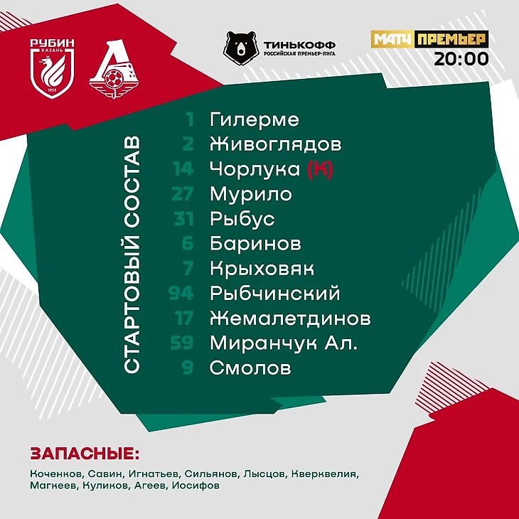 В матче с «Рубином» у Николича не было опций для усиления атаки со скамейки запасных. Этот факт должно исправить возвращение Антона Миранчука, заявка Лисаковича и приобретение Камано. Если Камано появится в команде, то, к сожалению, очень мало шансов на игру в старте будет у Рыбчинского.