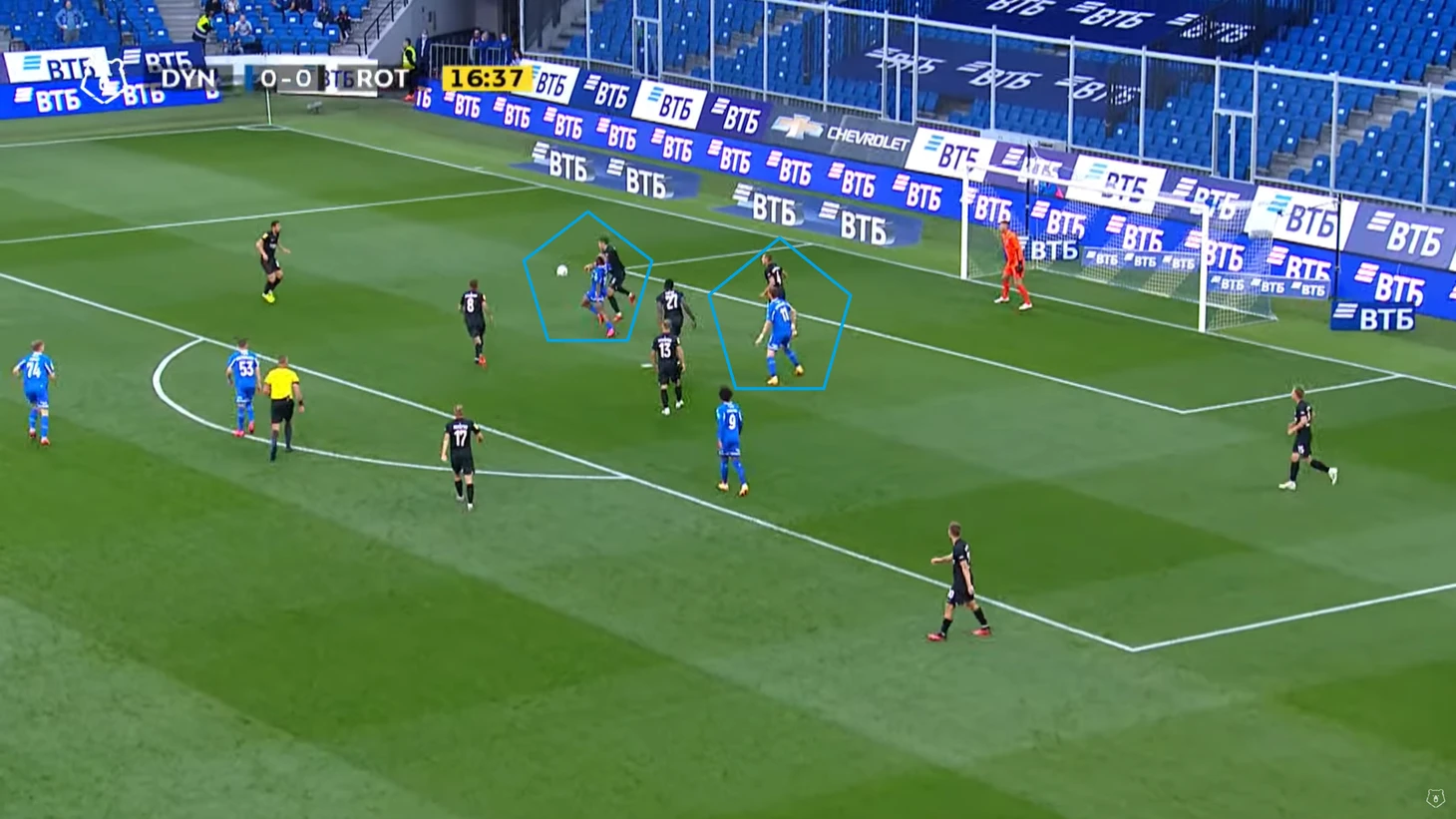 Казалось бы, два момента у своих ворот должны как-то завести команду, но Ротор также использовал тактику активного прессинга на всех линиях, и подойти к штрафной было сложно. Когда же мяч оказывался в штрафной Ротора, то никак не получалось грамотно им распорядится: ни нанести разящий удар, ни отдать обостряющую передачу. Защитники волгоградцев переигрывали динамовцев в таком ключевом компоненте игры как борьба за мяч. Например на 17 минуте было проиграно сразу два единоборства (Комличенко, Игбун):