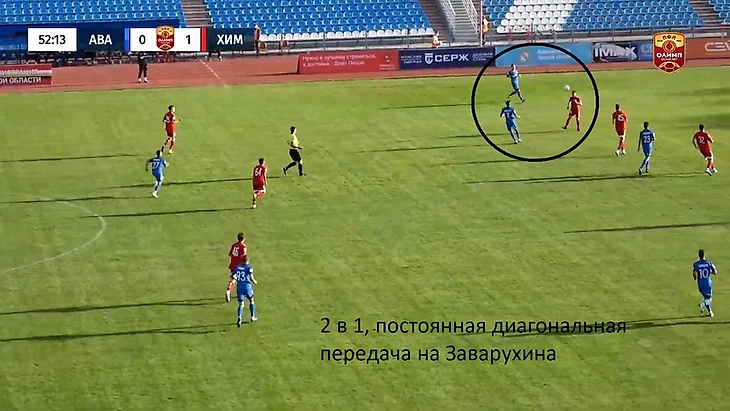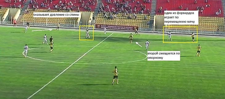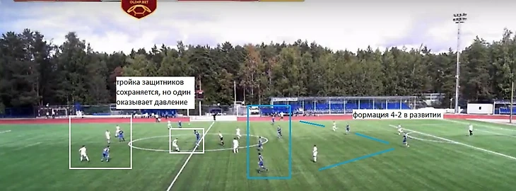 Эта формация создавала проблемы « Химкам» при прессинге: при кажущемся давлении « Химки» часто оставляли кого — то из игроков в центре без опеки, а при персональном прессинге ЦЗ выходили через переводы на другие фланги: