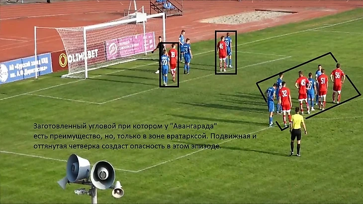 Отметим формацию на подборе после угловых у « Рязани»: команда выстраивается треугольником, что позволяет иметь достаточное количество игроков при подборе и возможной контратаке. Интересно, что будут делать в таких случаях следующие соперники ( уровень ПФЛ позволит, например, обороняться зонно в формате 4-3, оттягивая трех атакующих игроков на половину « Рязани» (сборная Мексики, ЧМ -2018) или в некоторых других модулях).