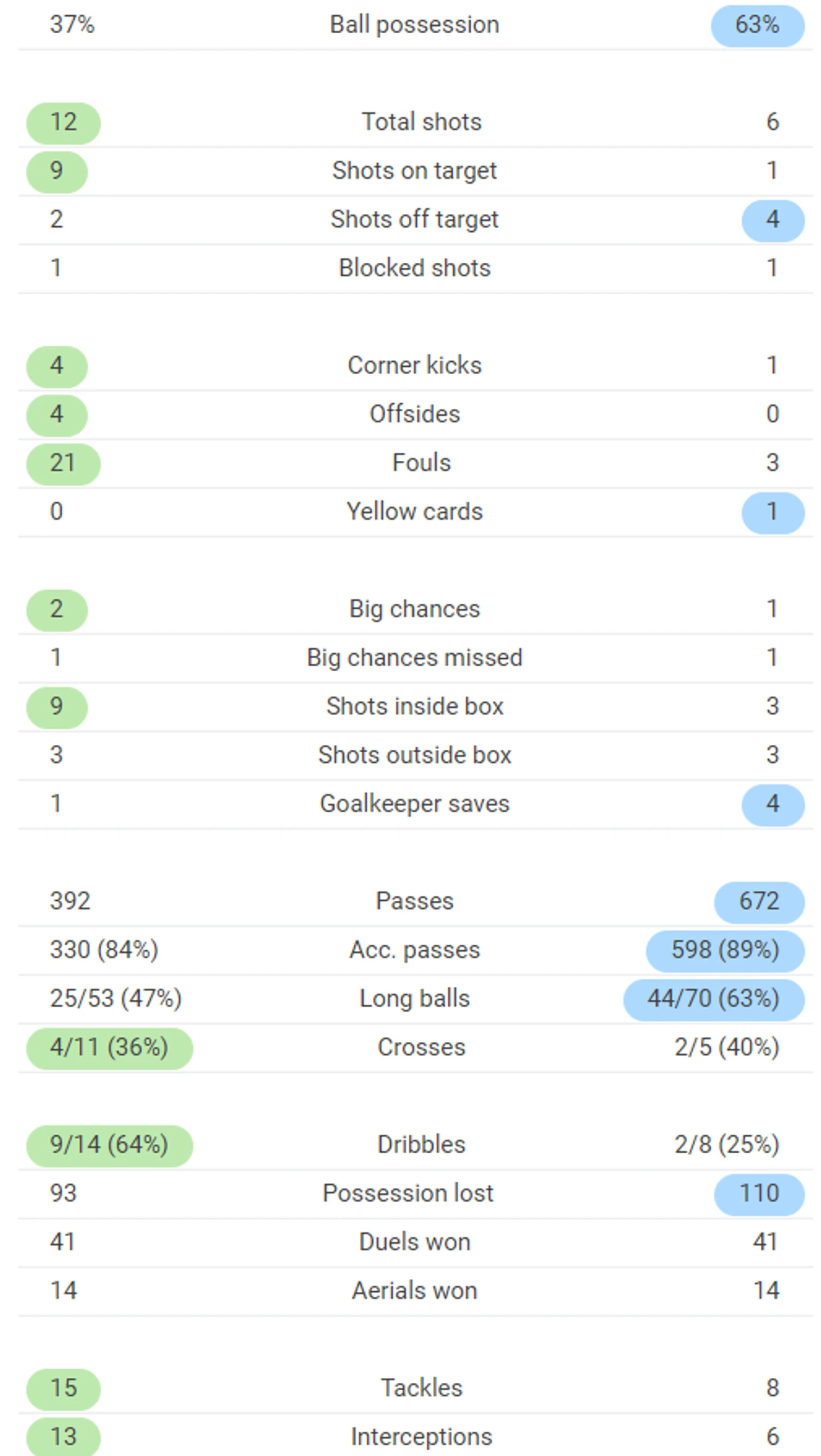 «Шахтер» был лучше «Интера» по многим показателям: количеству ТТД (884 против 623), проценту брака (15% против 20%), количеству передач (672 – 392) и их точности (89% против 84%). Но каким бы стерильным не был твой футбол, все решается в деталях. За весь матч «горняки» нанесли только четыре удара (один в створ), а самое главное – проиграли борьбу. «Интер» выиграл 53% единоборств, почти в два раза чаще отбирал мячи (22-13) и в три раза чаще делал это успешно (17-6), а еще чаще совершал перехваты (39-24).
