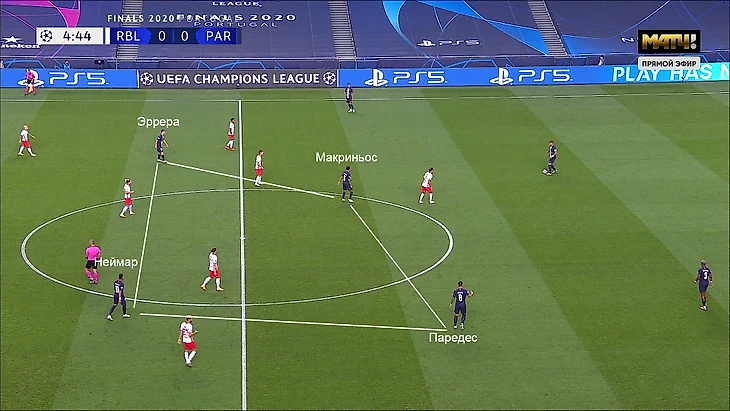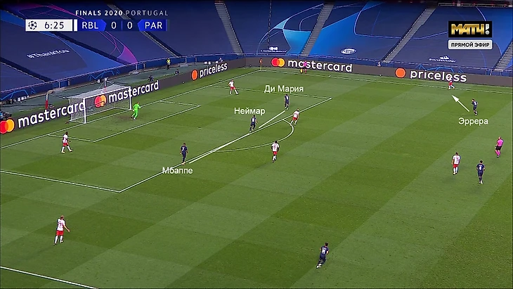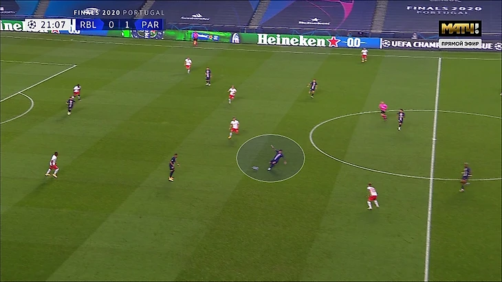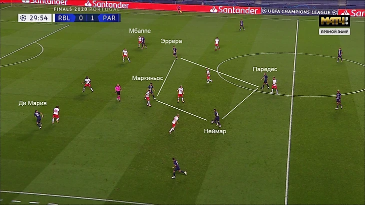 Периодически он получал свободу, но полностью использовать это у «РБ» не получилось. В первом тайме таких моментов было совсем немного из-за контроля «ПСЖ», а во втором с двойной задачей (закрывать центр и прикрывать фланг) классно справился Эррера.