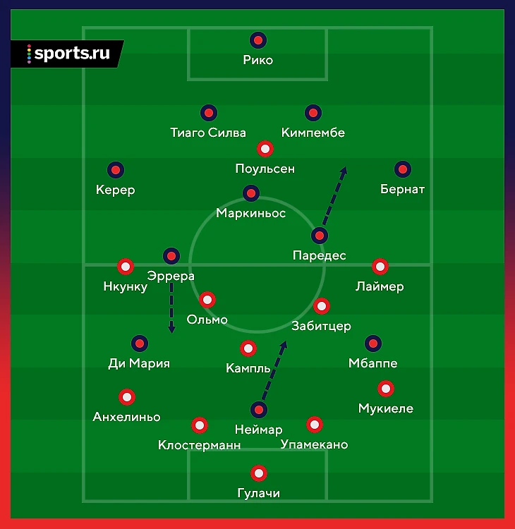Серхио Рико вынужденно сменил Кейлора Наваса в воротах. В тройке полузащиты вместо Идриссы Гуйе вышел Леандро Паредес. Тактически важная перестановка – вместо разрушителя вышел контролирующий игрок. На эту роль идеально подошел бы и Марко Верратти, но не был полностью готов.