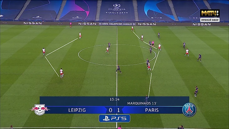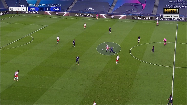 Второй тайм: «Лейпциг» рисковал, такого полного контроля у «Парижа» больше не было, игра стала открытой в обе стороны, что тоже было выгодно команде Тухеля (соперник вынужден атаковать количеством, что на руку быстрому техничному трио при контратаках).