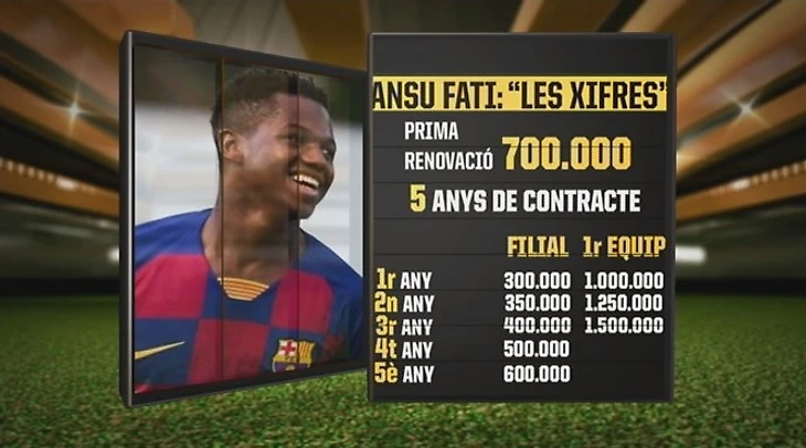 Как видима, сумма, полученная по тому проекту Родриго Месси (агентом Анссумане), лишь в 3 раза меньше общей суммы, которую Фати мог бы получить за 5 сезонов в «Барсе Б». Стоит отметить, что по проекту Ансу имел бы клаусулу в 100 млн евро, а нынешняя равна 170 млн евро. Нехитрые подсчеты дадут понять, что по действующему контракту испанец получил около 500 тысяч евро за сезон. Сумма это, естественно, не маленькая, но таков сейчас футбол.